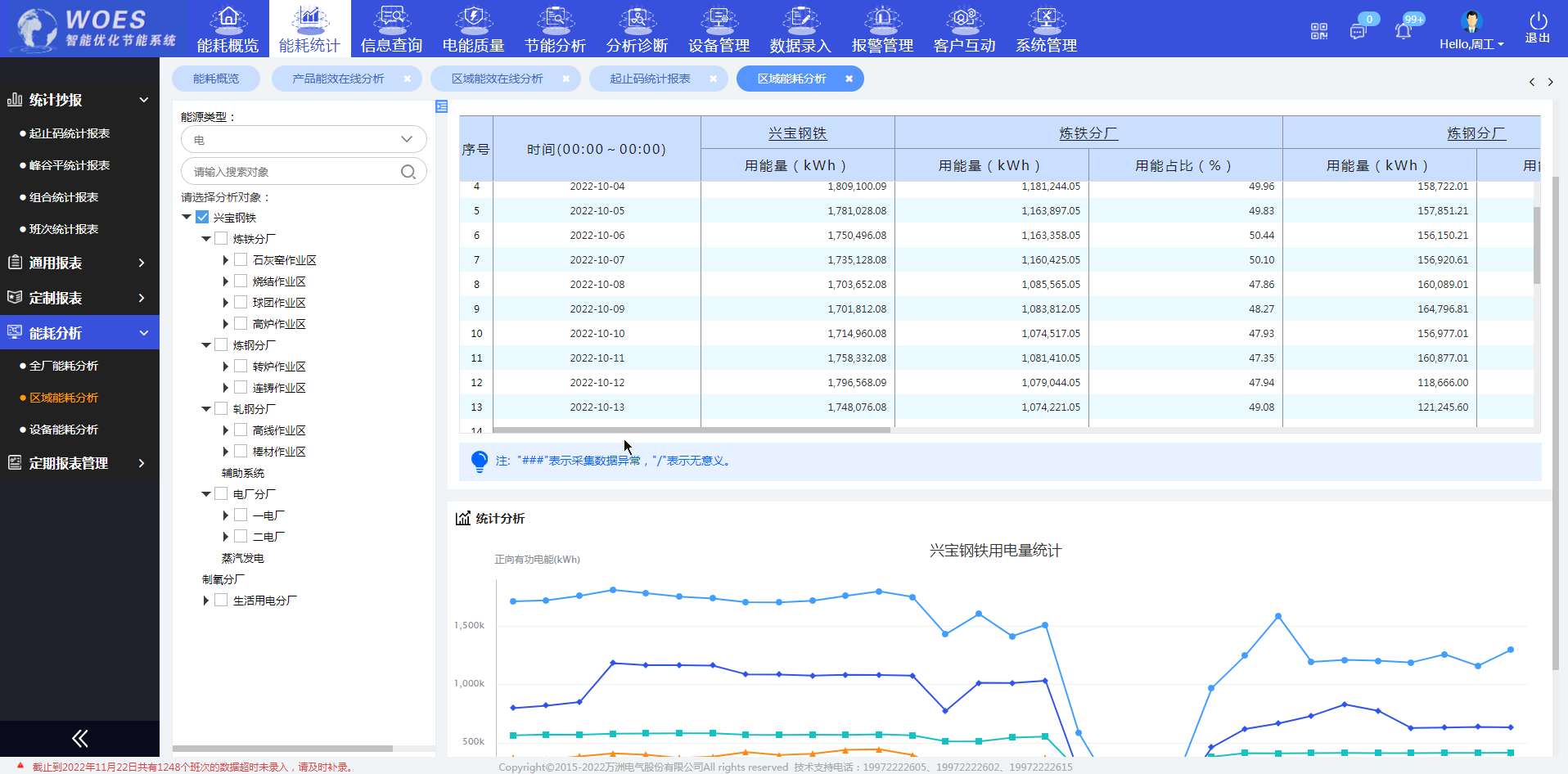展示全廠、區域和設備各種能源的總用能量,從日、月、年維度分析其用能走勢以及具體數據。