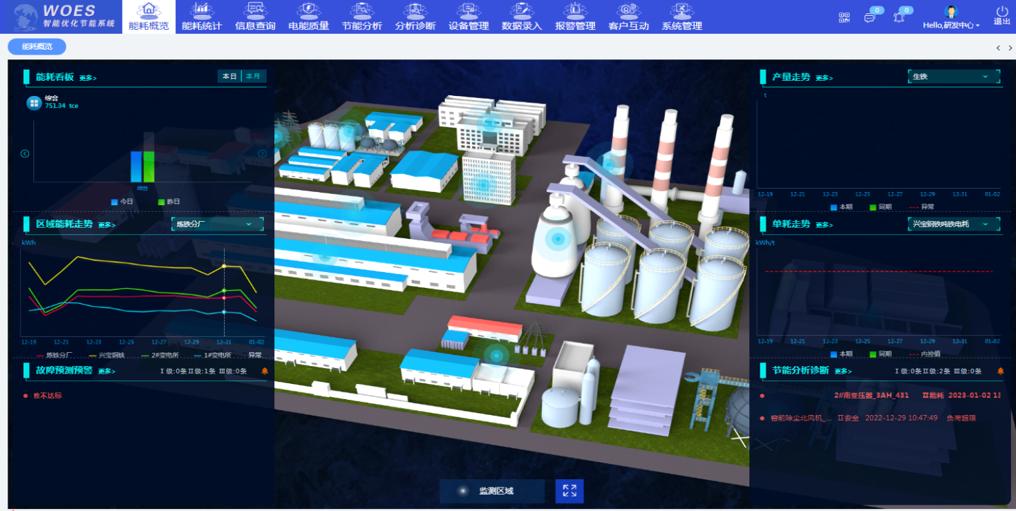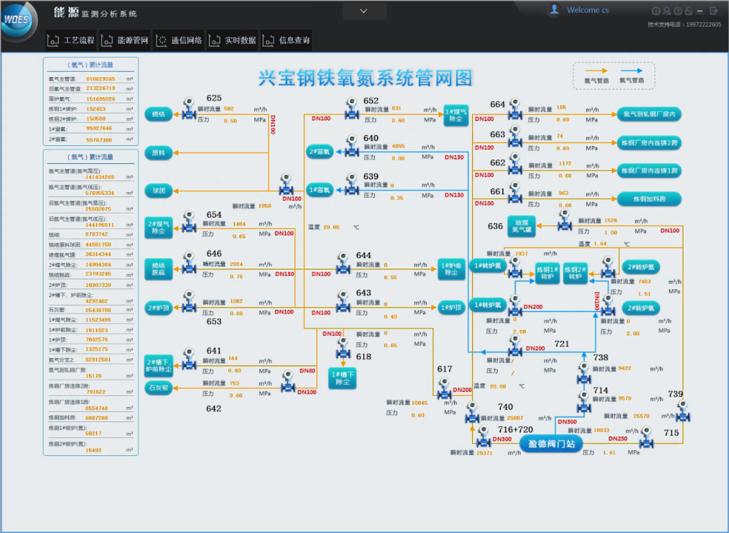 山西省某鋼鐵有限責(zé)任公司W(wǎng)OES智能優(yōu)化節(jié)能系統(tǒng)監(jiān)測能源種類為電力、水、蒸氣、煤氣,監(jiān)測點共計411個,其中電力監(jiān)測點338個、水系統(tǒng)監(jiān)測點44個、蒸汽和煤氣、氮氣、氧氣監(jiān)測點52個。涵蓋煉鐵廠(石灰窯工段、噴煤工段、球團(tuán)工段、燒結(jié)工段、高爐煉鐵工段)、煉鋼廠、軋鋼廠、制氧廠、發(fā)電廠、煤氣柜。項目主要建設(shè)內(nèi)容如下: