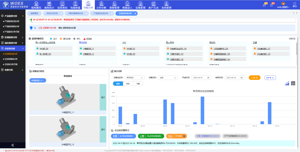 WOES智能優化節能系統。運行以來每年節約電費63萬元。具體節能效益如下: