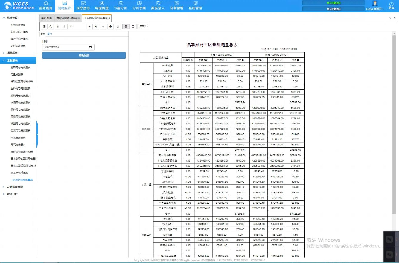 山西某建材有限公司于2017年成立,該公司有一條2500t/d生產線,全廠供電由兩臺10000kVA的變壓器(110kV/6kV)供給各個工段該,再通過配電系統向高壓電機、變壓器等設備供電,電力占企業的能源成本很大且電表數量多,該公司2019年8月部署了一套WOES智能優化節能系統。